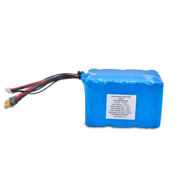 Напруга та ємність: Типова напруга для багатоцільових (6S) літій-іонних акумуляторів становить приблизно 21.6 вольта, а ємність становить 21000 мА·год, максимальний струм розряду – 147А.