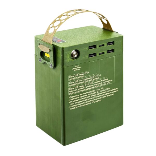 Цей повербанк має наступні характеристики: 4 виходи USB QuickCharge 3.0 з різними напругами та струмами (5В-3A / 9В-2A / 12В-1,5А), 4 виходи USB з напругою 5В та струмом 2А, а також чотири виходи USB Type C для зарядки пристроя. За допомогою данної моделі можна заряджати одночасно 4 рації через перехідні дроти 12В та 14В, або 8 девайсів (телефони, планшети, приціли, тепловізори, тощо). Також Ranger Q1440 1S можна заряджати одночасно чотирма зарядними пристроями, що скорочує час заряджання повербанку до 7 годин. Від одного зарядного пристрою 20Вт повербанк заряджається 28 годин.