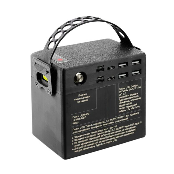 | Роз’єм | 2xLightning, 2xMcroUSB, 2xType C (22.5W), 4x USB Type A (5V-2A, USB QC 3.0 9V-2A), USB QC 3.0 12V-1.5A, USB QC 3.0 5V-3A |