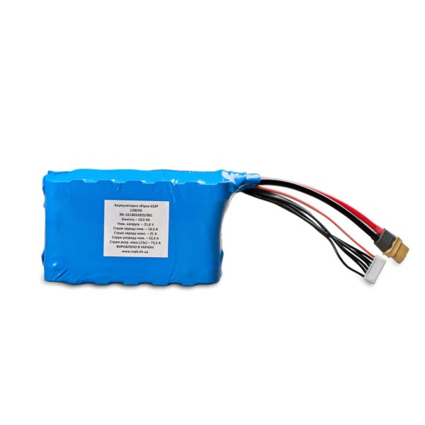 Напруга та ємність: Типова напруга для багатоцільових (6S) літій-іонних акумуляторів становить приблизно 21.6 вольта, а ємність становить 10500 мА·год, максимальний струм розряду – 73,5А.