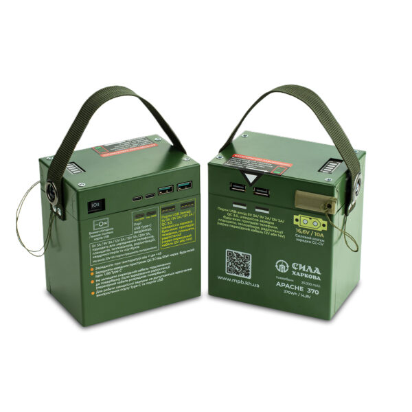 Повербанк для військових “Apache-370” – це надійний та потужний пристрій, який забезпечить Вам достатньо енергії для зарядки важливих пристроїв у будь-яких екстремальних умовах.