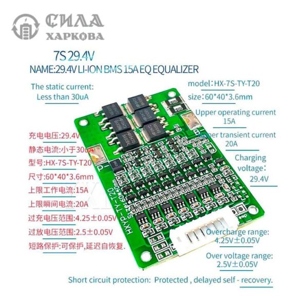 Наш BMS контролер, оснащений функціоналом інтегрованого управління зарядом для сьоми акумуляторів, є ідеальним вибором для оптимального керування енергією вашого пристрою. Ми представляємо вам модель HX-7S-TY-T20 – надійний і ефективний захисник для ваших акумуляторів.