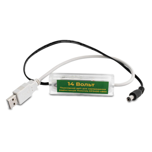 Кабель-перетворювач має стандартний роз’єм USB на одному кінці та роз’єм 5.5*2,5 мм на іншому, який підходить для підключення до рацій Motorola. Кабель виконаний із міцних та надійних матеріалів, що гарантує його довговічність та надійність при використанні в екстремальних умовах.