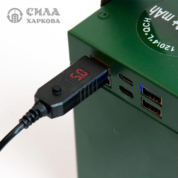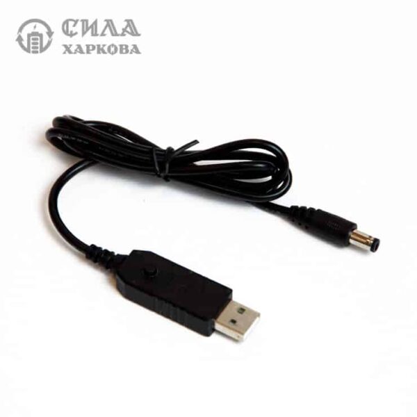 Кабель-перетворювач має роз’єм USB з LED-дисплеєм та перемикачем напруги на одному кінці та роз’єм 5.5*2,5 мм на іншому, який підходить для підключення до рацій. Кабель виконаний з надійних та міцних матеріалів, що гарантує його довговічність та надійність при використанні в екстремальних умовах.