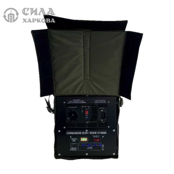 Модель “Commandos 25,9V/1000W/2,1kWh” оснащена потужною акумуляторною батареєю 25,9V ємністю 2,1 kWh та інвертором потужністю 1000W з вбудованим зарядним пристроєм. Ця комбінація дозволяє забезпечити надійне автономне живлення 220V в будь-якому місці, коли це необхідно. Це особливо важливо в зонах бойових дій! Наші портативні зарядні станції вже допомагають нашим захисникам в зоні проведення бойових дій при використанні системи Starlink (забезпечується автономна робота супутникового інтернету на протязі 18-22 годин), дозволяють військовим заряджати всі необхідні гаджети прямо на полі бою, включаючи рації, тепловізори, батареї дронів, приціли, планшети, телефони та багато інших пристроїв. Також акумулятор цієї станції можна заряджати за допомогою сонячних панелей, які можна придбати додатково.