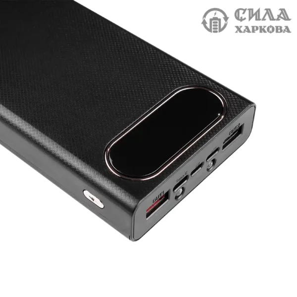 Повербанк має пластиковий корпус та габаритні розміри 180/82/20 мм, а його вага складає всього 550 г. Він оснащений двома роз’ємами USB, двома роз’ємами Type C, micro USB, що забезпечує зручність при підключенні різних пристроїв.