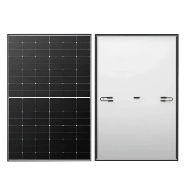 Монокристалічна панель LR5-54HTH-430M потужністю 430 Вт має ККД 22% і підходить для мережевих, автономних і гібридних систем. Виготовлена з 108 кремнієвих елементів у міцній рамі, покрита загартованим склом. Витримує град 25 мм, вітрові 2400 Па та снігові навантаження 5200 Па. Клас захисту IP68 гарантує пилонепроникність і водостійкість.