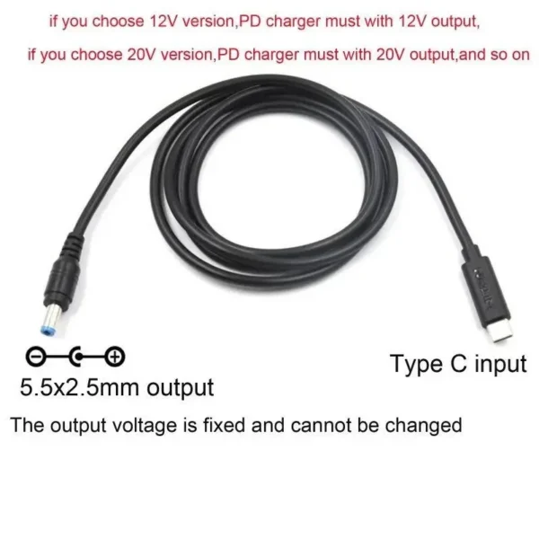 Кабель F61R02-L04-02 Type C- PD / 5.5×2.5mm 120 mm 12V/5А