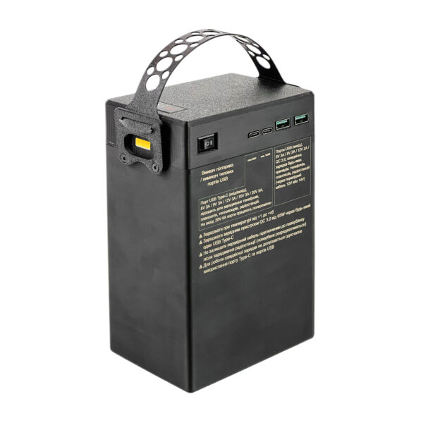 Порт USB Type-C (вхід/вихід) підтримує потужну зарядку до 100W (20V / 5A), що дозволяє працювати не лише зі смартфонами й планшетами, а й з ноутбуками, батареями дронів, тепловізорами, прицілами та іншою спеціалізованою технікою.