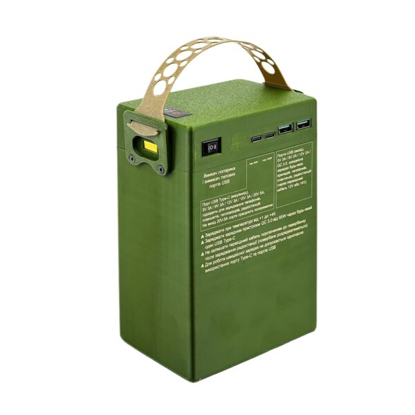 Порт USB Type-C (вхід/вихід) підтримує потужну зарядку до 100W (20V / 5A), що дозволяє працювати не лише зі смартфонами й планшетами, а й з ноутбуками, батареями дронів, тепловізорами, прицілами та іншою спеціалізованою технікою.