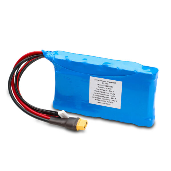 Напряжение и емкость: Типичное напряжение для многоцелевых (6S) литий-ионных аккумуляторов составляет примерно 21.6 вольта, а емкость составляет 4800 мА-ч, максимальный ток разряда — 19,2А.